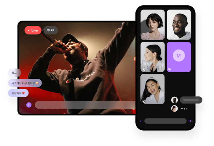 다양한 기능을 갖춘 라이브 채팅 및 영상 플랫폼으로 참여를 유도하고, 수익을 창출하고, 브랜드 자산을 구축하세요.